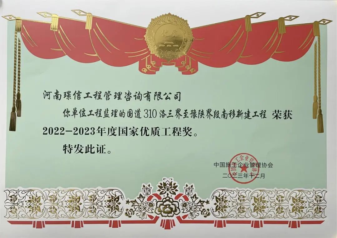 近日,2022至2023年度國家優(yōu)質(zhì)工程獎(jiǎng)總結(jié)表彰大會(huì)在北京召開,河南璟信參建的三門峽市國道310南移新建工程榮獲“2022-2023年度國家優(yōu)質(zhì)工程獎(jiǎng)”,該獎(jiǎng)項(xiàng)設(shè)立于1981年,是我國工程建設(shè)領(lǐng)域設(shè)立最早、規(guī)格最高的國家級(jí)質(zhì)量獎(jiǎng)。 ...